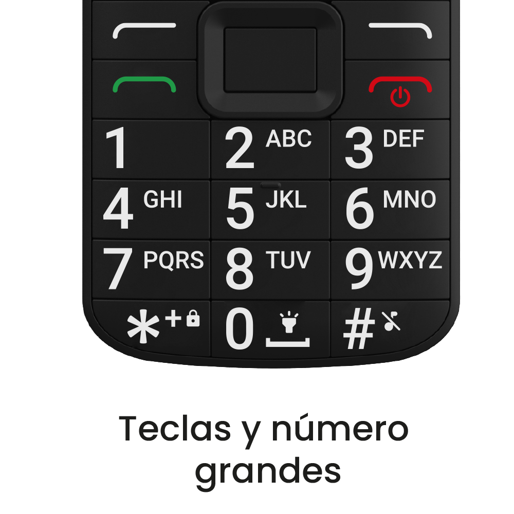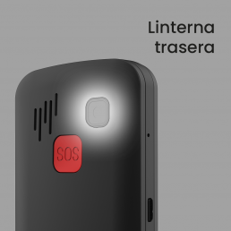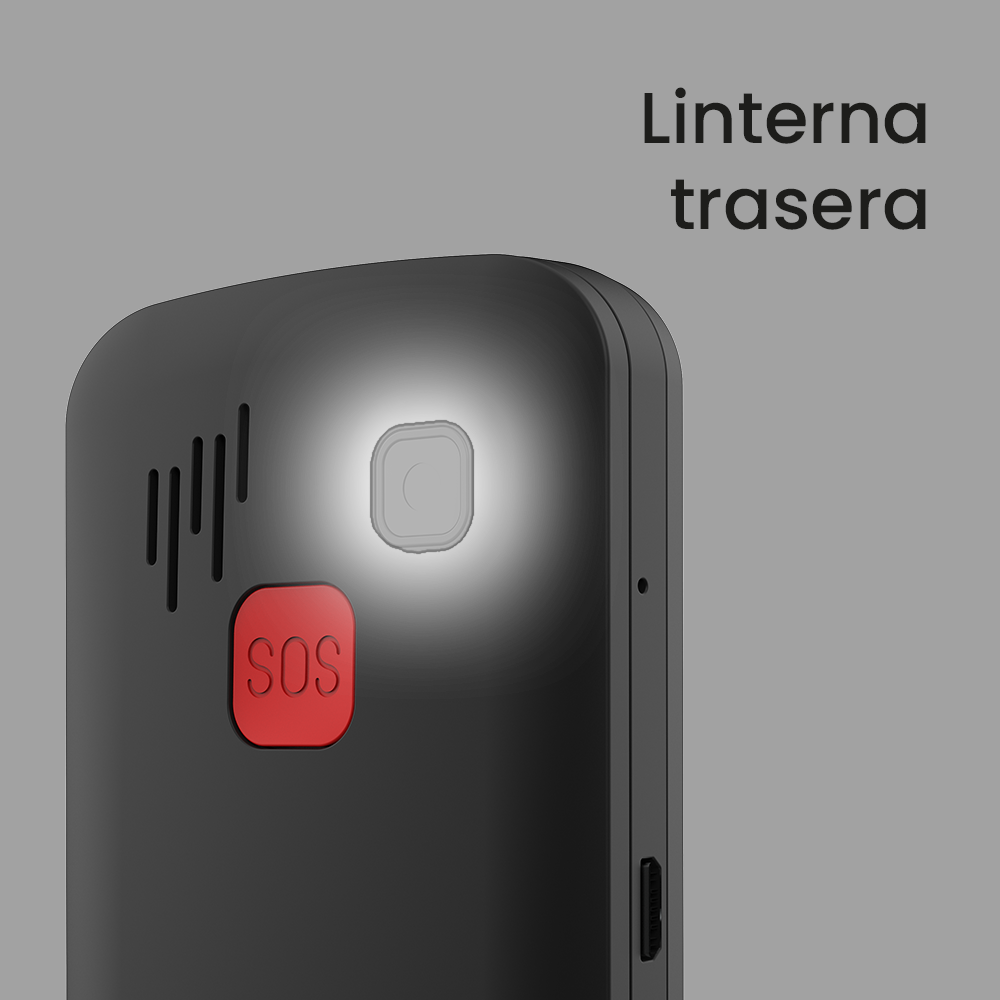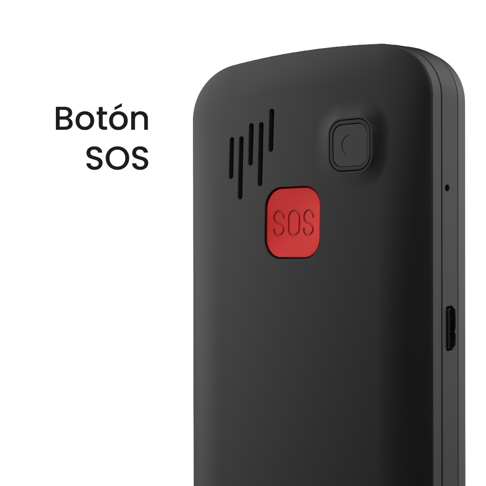Cuenta con teclas grandes, ideales para una marcación cómoda y precisa, y una pantalla a color de 2.4” que garantiza una visualización clara de números y menús. En la parte trasera incorpora un botón SOS, fácilmente identificable, que permite llamar automáticamente hasta a cinco contactos y enviar mensajes de emergencia, ofreciendo una respuesta rápida ante cualquier situación imprevista.
